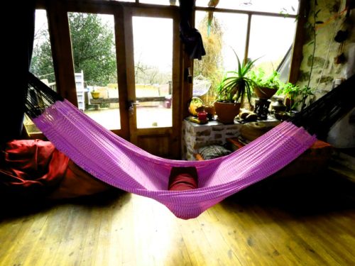 Hamac en coton Mercerisé et suspentes en nylon. Poids 2kg015